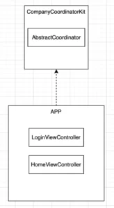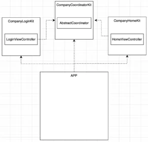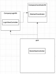 If we separate this into modules we can come up with three modules already: a Login Module, a Home Module, and the Coordinator Module. We will use Apple’s way of naming calling them CompanyLoginKit, CompanyHomeKit, and CompanyCoordinatorKit.