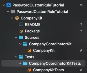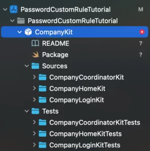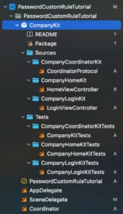 Now rename the Sources -> CompanyKit to CompanyCoordinatorKit and the Tests -> CompanyKitTests to CompanyCoordinatorKitTests as in the image shown below: